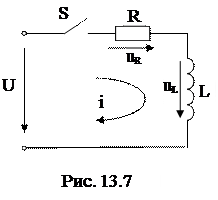 Напруга на активному опорі uR змінюється аналогічно струму Напруга uL в момент комутації зростає стрибком до величини прикладеної напруги Графіки перехідних i, uR, uL приведені на рис. 13.8 Під час ПП енергія джерела витрачається на утворення магнітного поля котушки і на нагрівання резистора