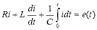 Розглянемо перехідний процес в колі після ввімкнення рубильника S. Перехідний процес в колі після комутації описується рівнянням uR+uL+uC=e(t). Підставимо значення uL, uR, uC та врахуємо ненульові початкові умови: