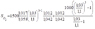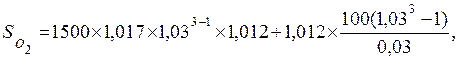 Пример 6.2. 1 июня 2000 года осуществлен вклад 1500 рублей под 3% годовых. Далее в начале каждого года осуществлен вклад по 1000 рублей. Тем инфляции 10% в год. Определить сумму накопления на 1 июня 2003 года.