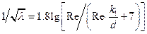 где k1 – приведенная линейная характеристика шероховатости, приближенно равная 0.1*k. Толщина ламинарного подслоя зависит от скорости потока в трубе. Следовательно, одна и та же труба с одной и той же шероховатостью может вести себя по-разному с точки зрения сопротивления трения, в зависимости от скорости потока и от соотношения k и dл. При малых числах Рейнольдса труба может вести себя как гидравлически гладкая, а при больших – как шероховатая. В соответствии с этим понятия гладкой или шероховатой трубы являются чисто гидромеханическими, а не техническими.