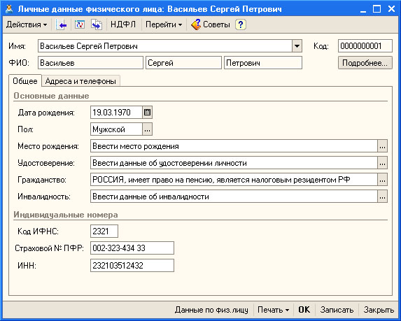 Рис. 8.1. Заполнение информации о физическом лице
