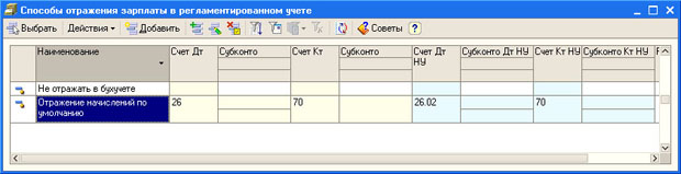 Рис. 8.6. Настройка отражения начисленной заработной платы в учете