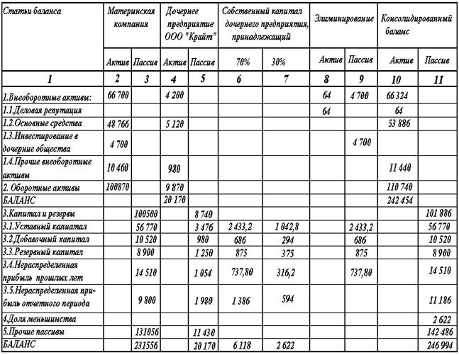 Составление консолидированного баланса