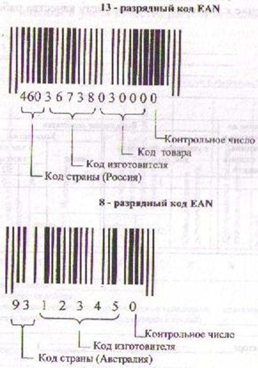 Рис. 10. 13-и и 8-ми разрядные штриховые коды EAN