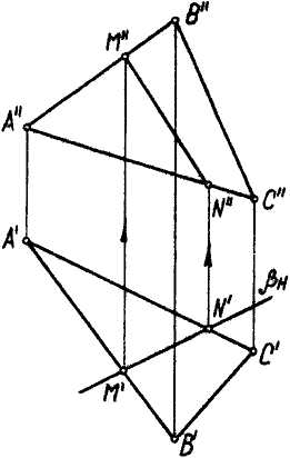 Вспомогательная задача 2. Определить линию пересечение плоскости общего положения с проецирующей плоскостью