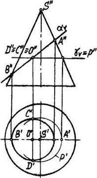1) Если плоскость пересекает все образующие конуса, то кривая пересечения в общем случае будет эллипс. В частном случае: если плоскость перпендикулярна оси конуса, будет окружность; если плоскость проходит через вершину конуса - точка.