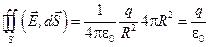 Примеры применения теоремы Гаусса. Теорему Гаусса удобно применять для определения напряжённости поля в случаях, когда картина силовых линий обладает какой-либо симметрией. Пусть q >0. Возьмём в качестве поверхности S сферу радиусом R с центром в месте нахождения заряда. На поверхности этой сферы вектор