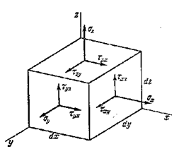 Последние три позволяют получить следующие соотношения В силу этого закона из указанных девяти напряжений различны только шесть. Нормальные напряжения считаются положительными, когда они вызывают растяжение элемента. Положительное напряжение компонент касательных напряжений совпадающих с положительным направлением осей, если растягивающие нормальные напряжения для той же грани совпадают с положительным направлением соответствующей оси.