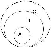 Таким чином може бути продемонстрована перша умова істинності умовиводів – висновок вірний, бо всі засновки у прикладах вірні. Стосовно вірної структури (другої умови), то, проводячи аналіз вказаних прикладів на рівні базових понять, ми можемо побудувати таку схему їх взаємовідношень: