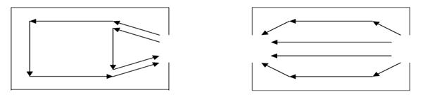 Эта задача состоит в минимизации числа операций, осуществляемых с товаром (грузом) на складе. Организация обычно перемещает товары на склад и размещает их в предназначенной для этого зоне, затем перемещает товары в зону комплектации, откуда они изымаются с целью выполнения заказов, а затем повторно размещает скомплектованные товары для подготовки их к отправке. Для рационального размещения товаров на складе применяется метод АВС-анализа (на основе правила Парето «20/80»), позволяющий минимизировать количество передвижений на складе посредством разделения всего ассортимента на группы, требующие большого количества перемещений, и группы, к которым обращаются достаточно редко. Как правило, часто отпускаемые товары составляют небольшую часть ассортимента, и их размещают в удобных, максимально приближенных к зонам отпуска местам, вдоль т.н. «горячих» линий. Товары, требующиеся реже, размещаются вдоль «холодных» линий (рис.6.4). Минимизировать число перемещений позволяют автоматическое управление и контроль. Организация может полностью автоматизировать весь технологический процесс, используя штрих-коды. В любом случае организация должна стремиться к исключению необязательных перегрузочных операций путем правильного проектирования эффективной системы управления МР.