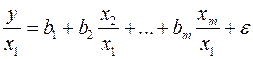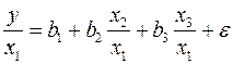 Это уравнение не содержит свободного члена. Вместе с тем, найдя переменные в новом преобразованном виде и применяя обычный МНК к ним, получим иную спецификацию модели: