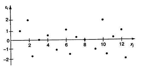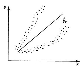 Рис. 2.5. Гетероскедастичность: большая дисперсия Соответственно для зависимости, изображенной на полях корреляции рис. 2.4б и 2.4в гетероскедастичность остатков представлена на рис. 2.6 и 2.7.