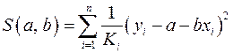 По отношению к обычной регрессии уравнение с новыми, преобразованными переменными представляет собой взвешенную регрессию, в которой переменные Оценка параметров нового уравнения с преобразованными переменными приводит к взвешенному методу наименьших квадратов, для которого необходимо минимизировать сумму квадратов отклонений вида