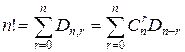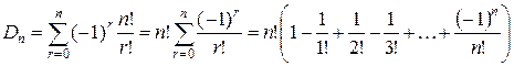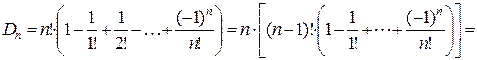 Для проверки полученной формулы вычислим количество беспорядков для некоторых значений n по рекуррентной и прямой формулам. По следствию 4, D 0=1, D 1=0.
