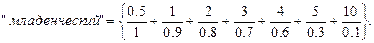 Рис. 6.2. Формирование нечетких множеств Рис.6.3 иллюстрирует оценку НМ неким усредненным экспертом, который ребенка до полугода с высокой степенью уверенности относит к младенцам (m=1). Дети до четырех лет причисляются к младенцам тоже, но с меньшей степенью уверенности (0.5<m<0.9), а в десять лет ребенка называют так только в очень редких случаях – к примеру, для девяностолетней бабушки и 15 лет может считаться младенчеством. Таким образом, нечеткие множества позволяют при определении понятия учитывать субъективные мнения отдельных индивидуумов.