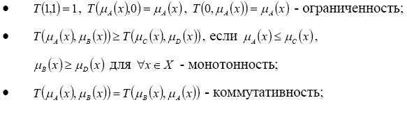 Треугольной конормой ( t -конормой) называется двуместная действительная функция T, отображающая две функции принадлежности нормальных нечетких множеств
