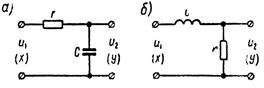 где k и Т — соответственно коэффициент усиления и постоянная времени звена. Примерами инерционного звена (рисунок 1.7.7) могут служить RC- и RL-цепочки.