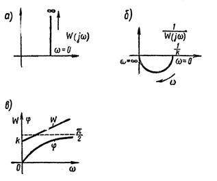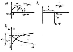 Частотные характеристики форсирующего звена показаны на рисунке 1.7.9. Как видно из графика, прямая амплитудно-фазовая характеристика форсирующего звена аналогична инверсной характеристике инерционного звена, а инверсная его характеристика соответствует прямой характеристике инерционного звена. Это соответственно отражается и на амплитудных и фазовых характеристиках. Передаточная функция форсирующего звена