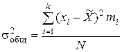 Общая дисперсия отражает вариацию признака за счет всех факторов, действующих в данной совокупности. Вариацию между группами за счет признака-фактора, положенного в основу группировки, отражает межгрупповая дисперсия, которая исчисляется как средний квадрат отклонений групповой средней от общей средней:
