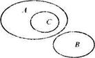 Рис. 112 Доказательство. Так как по условию В - собственное подмножество множества А, то с помощью кругов Эйлера их можно представить так, как на рисунке 112. Разность А\В на этом рисунке заштрихована. Видим, что множества В и А\В не пересекаются и их объединение равно А. Поэтому число элементов в множестве А можно найти по формуле n(А) = n(В) + n(А\В), откуда, по определению вычитания как операции, обратной сложению, получаем, что n(А\В) = n(А) - n(В). Из рассмотренной теоремы следует, что с теоретико-множественных позиций разность натуральных чисел а и b представляет собой число элементов в дополнении множества В до множества А, если а = n(А), b = n(В) и ВÌА. а – b = n(А) - n(В) = n(А\В), если ВÌА. Аналогичное истолкование получает вычитание нуля, а также вычитание а из а. Так как А \ Æ = А, А \ А = Æ, то а - 0 = а и а - а = 0. Взаимосвязь вычитания чисел и вычитания множеств позволяет обосновать выбор действия при решении текстовых задач. Выясним, например, почему следующая задача решается при помощи вычитания: «У школы росло 7 деревьев, из них 4 березы, остальные липы. Сколько лип росло у школы?» В задаче рассматриваются три множества: множество А всех деревьев, множество В берез, оно является подмножеством множества А; и множество С лип - оно представляет собой дополнение множества В до А. В задаче требуется найти число элементов в этом дополнении. Так как по условию n(А) = 7, n(В) = 4 и ВÌА, то n(С) = n(А\В) = n(А) - n(В) = 7 – 4. Разность 7 - 4 - это математическая модель данной задачи. Вычислив значение этого выражения, получим ответ на вопрос задачи: 7 -- 4 = 3. Следовательно, у школы росло 3 липы. Рассматриваемый подход к сложению и вычитанию целых неотрицательных чисел позволяет истолковать с теоретико-множественных позиций правила вычитания числа из суммы и суммы из числа. Выясним, например, теоретико-множественный смысл правила: «Если а. b, с - натуральные числа и а > с, то (а + b) - с = (а - с) + b».