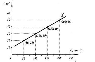 Аналитически функция предложения выражается следующим равенством: S(P) = a + b*P