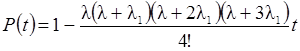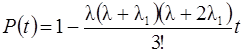 Рассмотрим надежность при резервировании постоянно подключенными резервными элементами, работающими до отказа основных в облегченном режиме. Для случая резервирования высоконадежного элемента с экспоненциальным законом распределения и интенсивностью отказов l элементами, работающими в облегченном режиме с интенсивностью отказов l1, вероятность безотказной работы при одном резервном элементе (рис. 2.3,б)