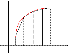 Геометрически площадь криволинейной трапеции заменяется суммой площадей вписанных трапеций. Очевидно, что чем больше взять точек n разбиения интервала, тем с большей точностью будет вычислен интеграл.