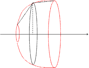 Определение: Площадью поверхности вращения кривой АВ вокруг данной оси называют предел, к которому стремятся площади поверхностей вращения ломаных, вписанных в кривую АВ, при стремлении к нулю наибольших из длин звеньев этих ломаных.
