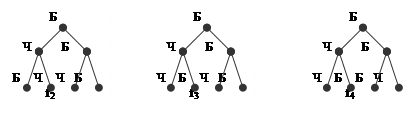 1. Пример: раскраска узлов бинарного дерева [11] Рассмотрим полное бинарное дерево с семью узлами и всевозможные различные варианты раскраски его узлов белым или черным цветом в предположении, что мы не отличаем «левое» от «правого». На следующем примере приведены различные представления одной и той же раскраски дерева: