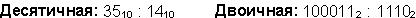 Ответ: 5865: 115 = 5110 = 1100112 = 638. Проверка. Преобразуем полученные частные к десятичному виду: Пример 11. Разделим число 35 на число 14.