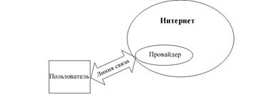 Рисунок 5.7 - Схема подключения пользователя к провайдеру Интернета Альтернативные технологии доступа в Интернет: –цифровая абонентская линия (DSL –Digital Subscriber Line), обеспечивающие высокую скорость работы (до 1-8 Мбит/с); –сети кабельного телевидения, радиоканалы, спутниковые каналы; –бытовая электрическая сети. Обращение к любому документу в сети Интернет осуществляется с помощью универсального указателя ресурса (URL – Uniform Resource Locator), который указывает местонахождение каждого файла, хранящегося на компьютере, подключенном к Интернету. В URL, кроме полного пути доступа к файлу на данном компьютере, указывается сетевое имя компьютера и протокол доступа к ресурсу. Пример URL: