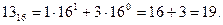 Пример. Выполнить перевод числа 1316 в десятичную систему счисления. Имеем: Таким образом, 1316 = 19.
