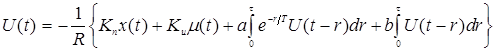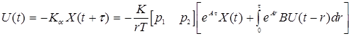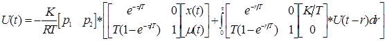 Полученный оптимальный закон управления содержит пропорциональную и интегральную составляющие (т.е ПИ- регулятор) и две функциональныe составляющие, соответствующие апериодическому и интегрирующему звеньям модифицированного объекта управления с запаздыванием.