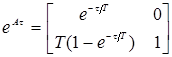 Как видно, закон управления наряду с пропорциональной составляющей содержит и функциональную составляющую. Очевидно, что для формирования оптимального закона управления необходимо знание структуры и параметров объекта управления, т.е. его математической модели. Из этого следует вывод, что оптимальный регулятор в своей структуре должен содержать модель объекта управления, с помощью которой будет реализовываться функциональная составляющая алгоритма. Для получения оптимального выражения в раскрытом виде найдем матричные экспоненты, входящие выражение (4.24), используя теорему Сильвестра