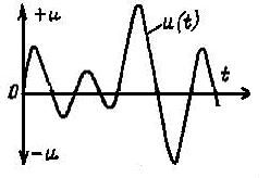 Рис. 2.5.3. Для флуктуационных помех характерно отсутствие выбросов, отличающихся от среднего уровня больше, чем в 3 - 4 раза и справедливо соотношение: τu<<Tcp При одних и тех же источниках на выходе устройства помехи могут быть импульсными или флуктуационными в зависимости от длительности нестационарного процесса τu, Которая обратно пропорциональна полосе пропускания Δf данного устройства. τu =k/ Δf (2.5.17) Для простейших избирательных устройств Известно, что для линейных устройств выходной уровень импульсных помех Uu пропорционален полосе пропускания Δt