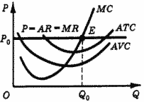 Однако, если цена выше средних переменных затрат (AVC), хотя и ниже средних общих затрат (АTС), фирма все же будет выпускать товар (рис. 5,б). Это объясняется тем, что фирма не может уменьшить сумму своих постоянных затрат (в рассматриваемом непродолжительном периоде) и вынуждена вести производство, если выручка покрывает хотя бы переменные затраты и частично обеспечивает тем самым средства, необходимые для покрытия постоянных затрат.