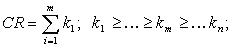 Индекс концентрации для m крупнейших из общего числа (n) компаний, выпускающих данный товар, рассчитывается как сумма m рыночных долей (ki) этих компаний: