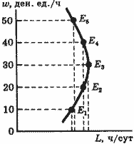 Будем считать, что все основные свойства кривых безразличия имеют место и для предпочтений в отношении дохода и досуга. В частности, каждая кривая обращена выпуклостью к началу координат. Если у человека мало досуга, то норма замещения досуга доходом относительно велика: сокращение досуга на один час в сутки требует для сохранения уровня удовлетворения значительной прибавки дохода. В левой части карты безразличия кривые имеют крутой наклон. Если же у человека досуга много, то он ценит дополнительный час ниже, и по мере движения вдоль кривой безразличия слева направо наклон ее снижается.