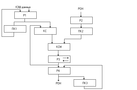Рис. 7.4. Магистральная структура с последовательным соединением операционных узлов В случае же параллельного соединения операционных блоков АЛУ все операционные блоки: СМ, СДВ, КС, ПК параллельно соединяются с входными и выходными шинами блока регистров, что позволяет выполнять несколько микроопераций параллельно. Выглядит это так, как показано на рис. 7.5.