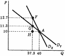 Они составят площадь треугольника AFH для продукта X и площадь треугольника AGH для продукта Y.