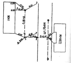 Плановая съёмка. От твердых точек капитальной застройки горизонтальную съёмку выполняют линейными засечками, способом перпендикуляров и способом створов. В обязательном порядке производят контрольные измерения расстояний между точками. Плановое положение элементов инженерных сетей определяют с точностью, обеспечивающей погрешность не более 0,2 м. Масштаб съёмки зависит от характера снимаемой территории, плот- V ности размещения сетей, назначения создаваемых планов и, как правило, составляет 1:5000 - 1:500, в исключительных случаях - 1:200. Исполнительной плановой съёмке подлежат: углы поворота, точки на прямолинейных участках не реже чем через каждые 50 м; точки начала, середины и конца сетей, пересечение трасс, места присоединений ответвлений; - элементы подземных сетей (люки, колодцы, камеры, компенсаторы и т. д.). Результаты измерений заносят в абрис, где зарисовывают элементы ситуаций и схему прокладываемого теодолитного хода, показывают привязки к опорной застройке, линейные размеры сооружения, сечения и т. д.