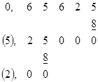 Аналогично по схеме Горнера можно получить правила перевода дробных чисел из одной системы счисления в другую, но так как там основание системы счисления в отрицательной степени, перевод сводится к ряду последовательных умножений. Правило1: последовательно умножать переводимое число и полученные дробные части на основание новой системы, выраженное в алфавите исходной, до тех пор, пока дробная часть не станет равной нулю или пока не будет достигнута заданная точность. Правило2: полученные целые части произведений, являющиеся цифрами числа в новой системе счисления, выразить в алфавите этой системы. Правило3: записать дробную часть числа в новой системе, начиная с целой части первого произведения. Пример.