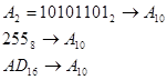 Для преобразования восьмеричных и шестнадцатеричных чисел в двоичные, необходимо каждую восьмеричную цифру заменить тремя двоичными, шестнадцатеричную – четырьмя. Преобразование из восьмеричной в шестнадцатеричную возможно с помощью предварительного перевода в двоичную. Перепишем общую формулу расчёта в позиционной системе счисления в следующем виде
