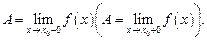 Левой (правой) полуокрестностью точки х 0 называется произвольный интервал Число А называется пределом слева (справа) функции f (x) в точкех 0, если функция f (x) определена в некоторой левой (правой) полуокрестности точки
