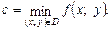 Число с называют наименьшим значением функции (глобальным минимумом) на множестве D, если