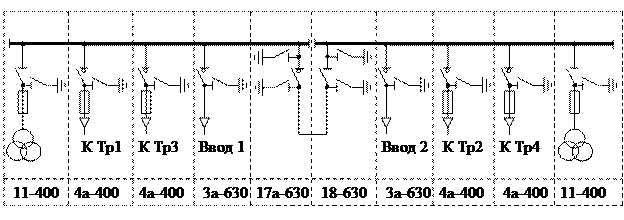 Рис. 3.1. Пример принципиальной схемы распределительной подстанции.