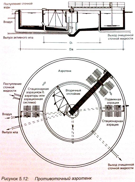 Компактные очистные станции производятся несколькими фирмами и имеют различные конструкции. Пример такой станции представлен на рис. 5.12. Такие компактные очистные сооружения,как правило,работают без первичного отстаивания и включают в себя аэротенк с совместной стабилизацией осадка, работающий в режиме продленной аэрации.Отдельные виды станций могут иметь отдельные сооружения для стабилизации осадка. Биологический процесс очистки сточных вод может проводиться также в окислительном канале. Работа таких сооружений должна тщательно контролироваться. При эксплуатации таких сооружений необходимо строго соблюдать все инструкции фирмы-изготовителя,которые могут быть скорректированы на месте.
