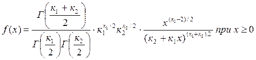 Если U и V - независимые случайные величины, распределенные по закону c2 со степенями свободы к1 и к2, то положительная случайная величина