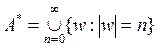 Определение 9.1.1. Конечное непустое множество называется алфавитом, его элементы называются символами (буквами). Определение 9.1.2. Конечная последовательность символов алфавита A называется словом в алфавите A. Пример 9.1.1. Пусть A= { а, б, в }. Тогда баба, ваб, ббб – слова в алфавите A, при этом осмысленность слов не предполагается. Определение 9.1.3. Слово, не содержащее ни одного символа, называется пустым и обозначается e. Множество всех слов в алфавите А будем обозначать А*, а через А+ – множество всех непустых слов. Определение 9.1.4. Число символов в слове w называется длиной слова w и обозначается ÷ w ÷. Длина пустого слова по определению равна нулю. Определение 9.1.5. Конкатенацией слов x и y называется слово, обозначаемое как xy (или x×y) и получающееся в результате приписывания слова y в конец слова x. Если w – слово, то через wn (n=1, 2, …) обозначается слово: