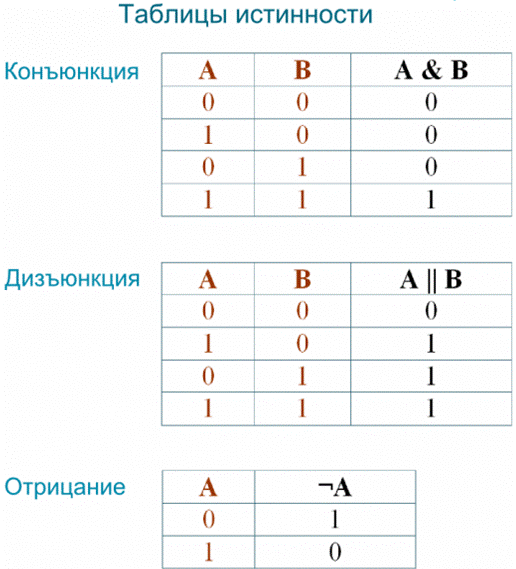 Лекция №3. Логические операции удобно описывать так называемыми таблицами истинности, в которых отражают результаты вычислений сложных высказываний при различных